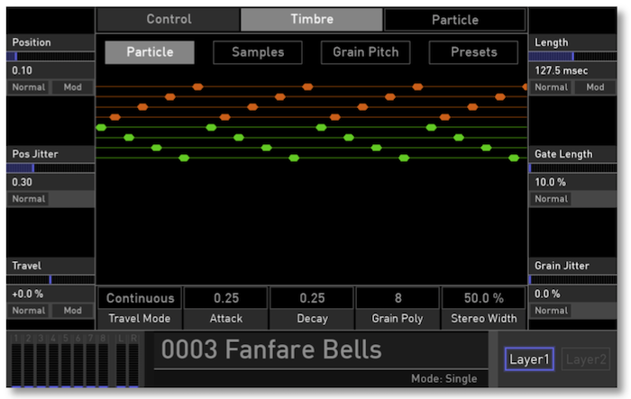 Come accennato in precedenza, ci sono otto parti timbriche indipendenti; ciascuna parte sfrutta una collana di otto effetti audio liberamente programmabili in totale autonomia dagli altri sette canali.